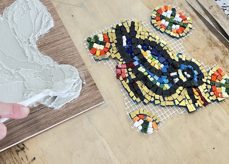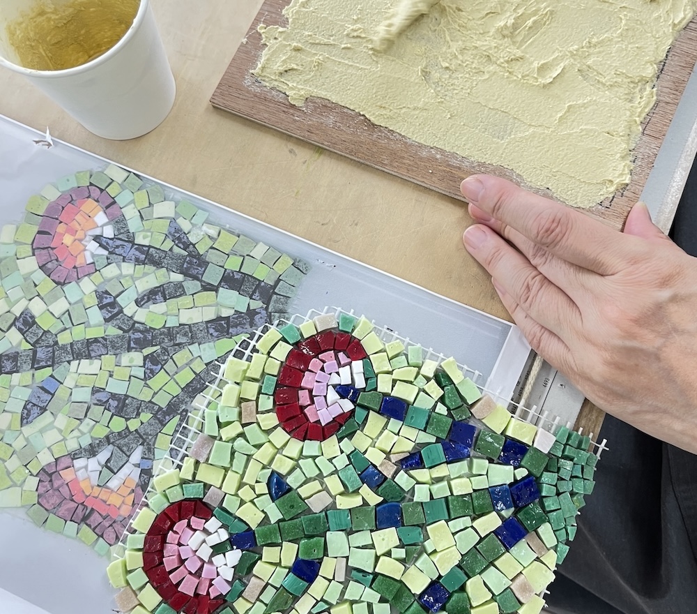 今回は、ラヴェンナ伝統のガラスモザイクに取り組みました。
